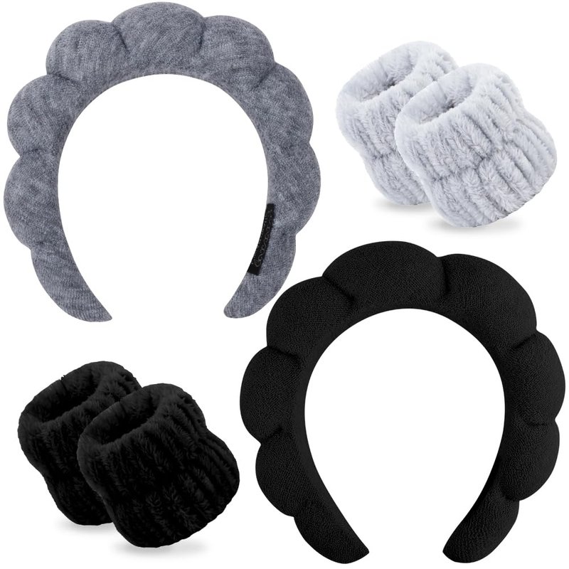 AOPRIE SPA Headbands for Washing Face Makeup Headbands with Bow Hair Band Women Facial Head Band Wrist Towel Wraps For Shower Face Mask Gray Black, 6 Pack