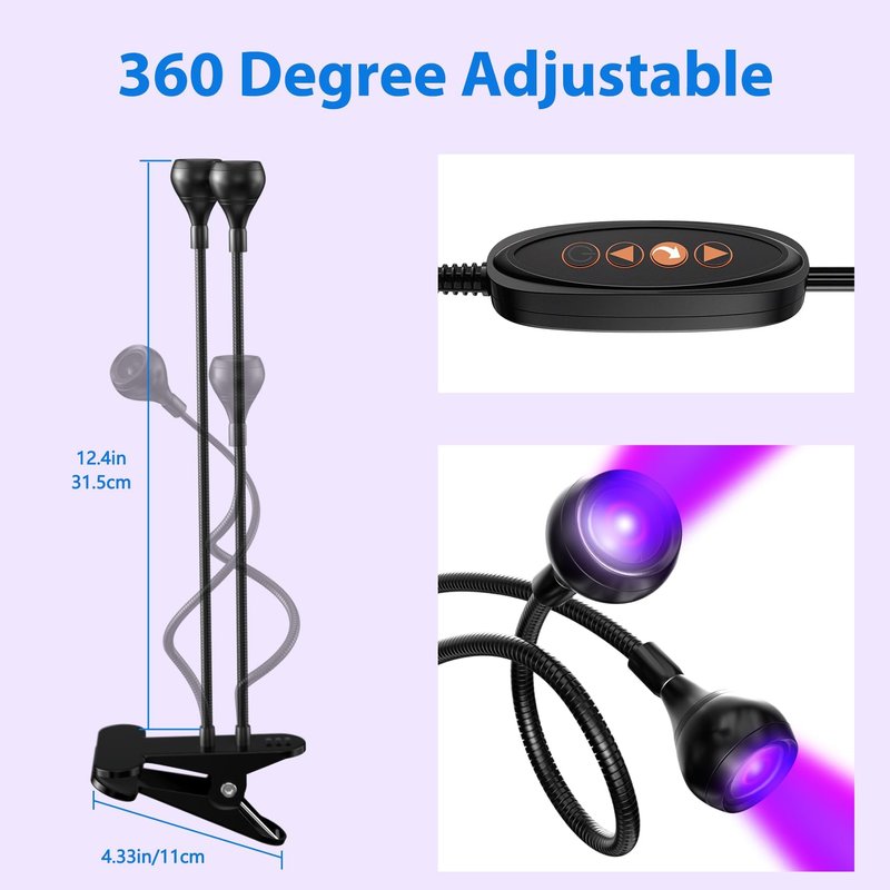 - 【Gooseneck LED Nail Lamp】AORAEM nail lamp made of aluminum alloy which has good durability. LED nail lamp is designed with a 360-degree rotatable neck and strong clip, which can be freely bent and adjusted to any angle, giving you great flexibility to cure different nail manicures.And the clip fixed smoothly, suitable for fixing to the bedside table, office desk, laptop desk, headboard, etc. It's extremely convenient to carry nail lamp around to enjoy your DIY nails.