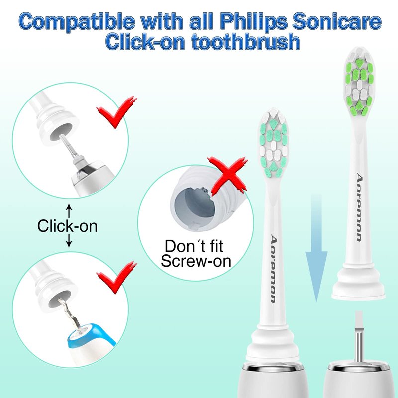 - Wide and full compatibility: Aoremon these two style replacement heads are Compatible with Phillips Sonicare ProtectiveClean 4300 5100 6100 DiamondClean 9000,DiamondClean Smart and any other Click on toothbrush model