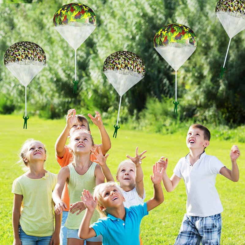 - Easy to operate: each camo throwing toy adopts a tangled-free design, no rope tangles and no extra links, you just need to roll up the parachute, then throw the parachute up high and wait for it to land; Reminder: please stay away from branches or roadside wires