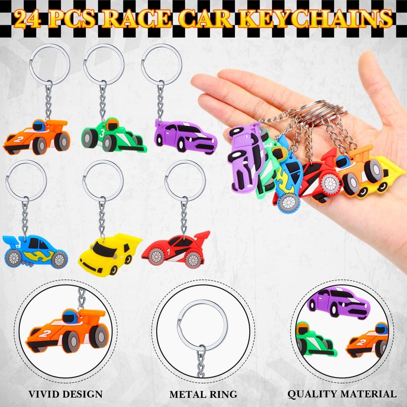 - Quality Material: racing birthday party favors are made of quality material, the race cars silicone bracelets are soft and comfortable on skin, tough enough to withstand daily wearing; The race car keychain rings are made of metal, reliable and can serve you for a long time