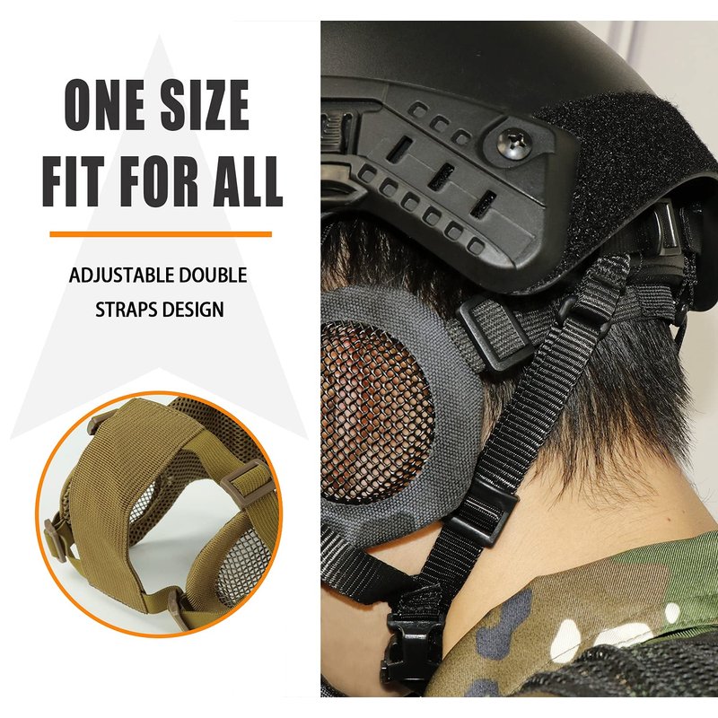 - ✨Mesh ear protector with adjustable straps Perfect for airsoft BB gun close quarters battles cosplay and party