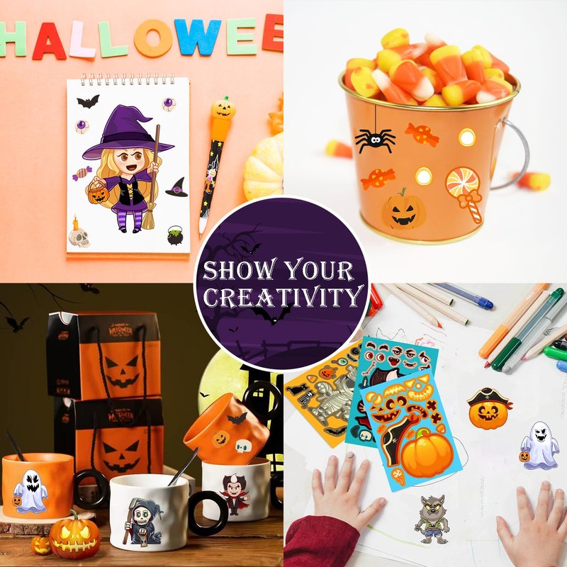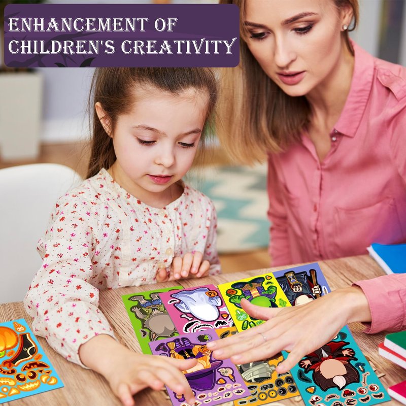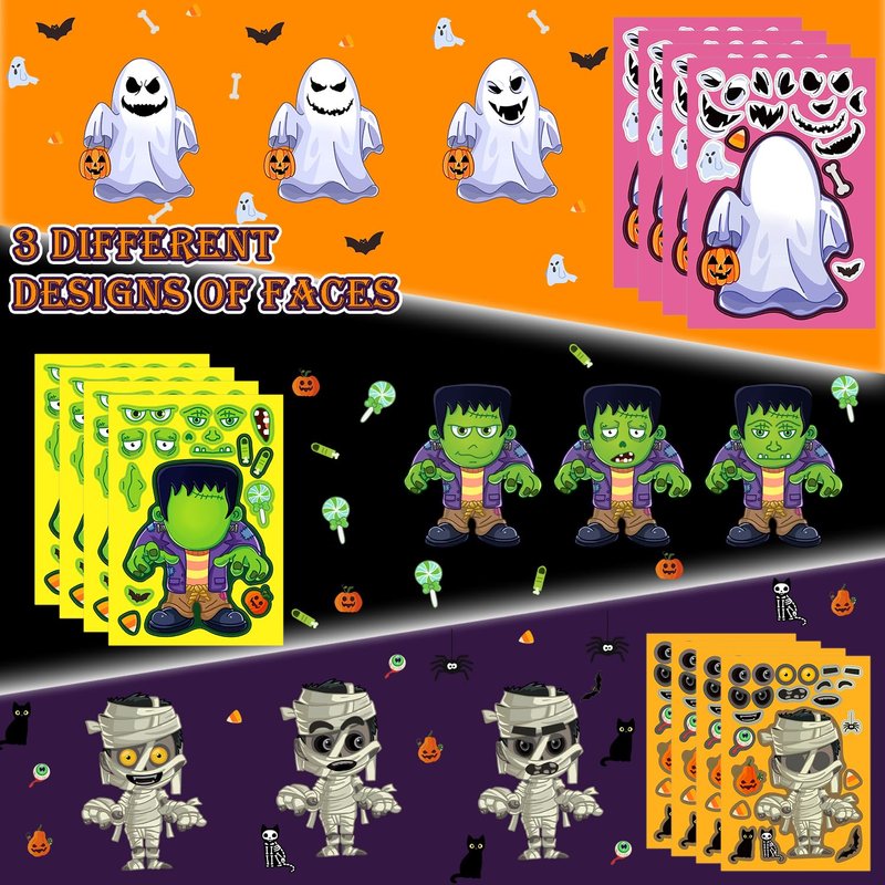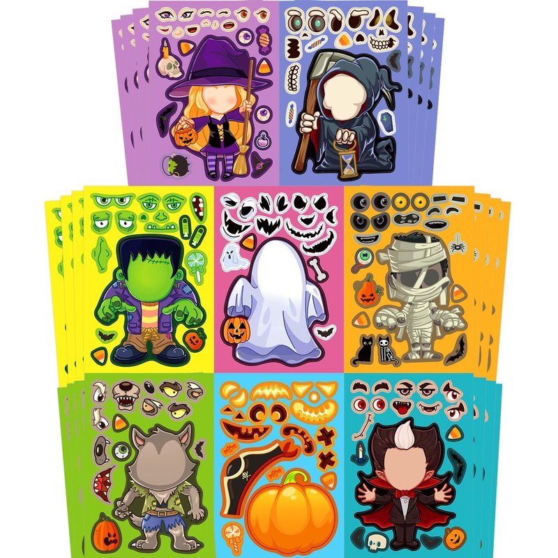 Aowplc 32 Sheets Halloween Stickers for Kids Make a Face Halloween Characters Stickers Halloween Kids Party Favors Crafts Game Activities Supplies