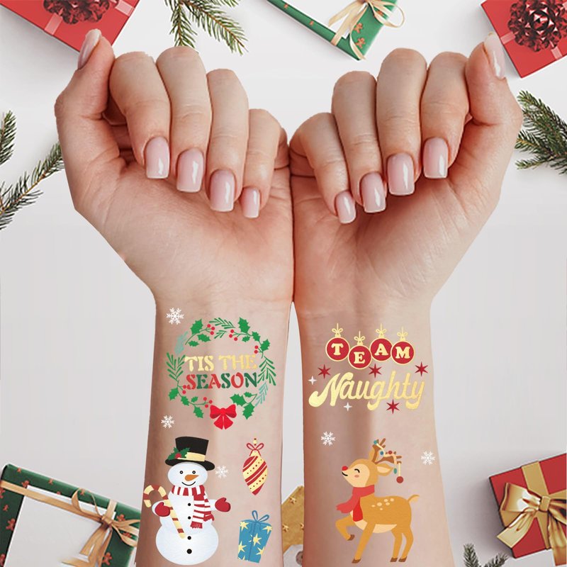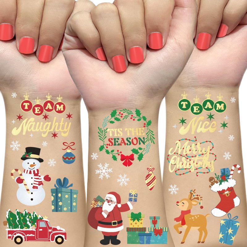 - Team Naughty or Nice? Our Christmas temporary tattoos are an essential decoration for Christmas! It can make you and your friends more attractive and popular at Christmas parties.