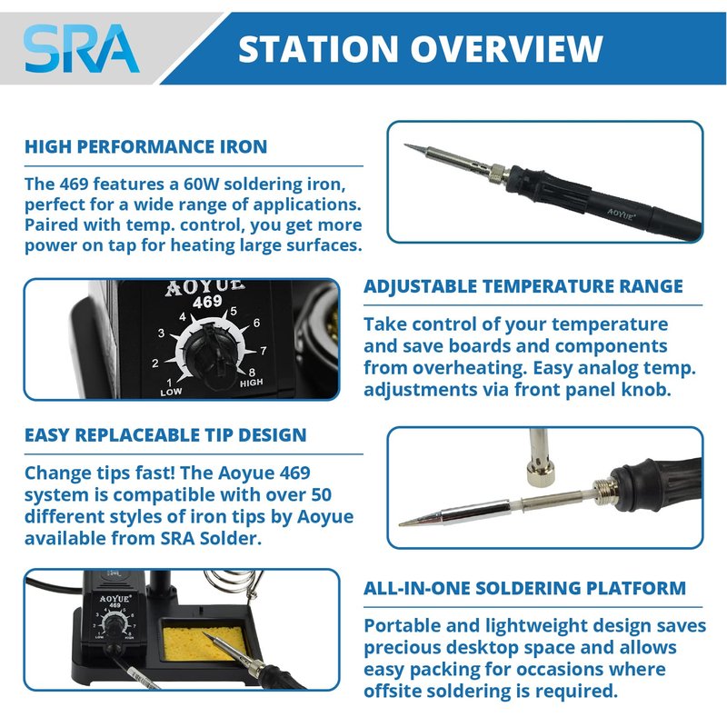 Aoyue 469 Variable Power 60 Watt Soldering Station with Removable Tip Design- ESD Safe