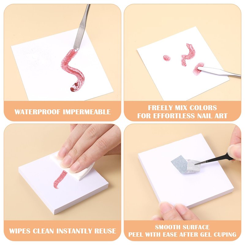 - 【DIY Nail Art Palette Paper】Our palette paper is not only for nails but also a must-have for artists and beauty and makeup enthusiasts. Easily mix and blend gel nail polish, glitter, and UV gel. Expand your creativity into makeup and art by mixing paints, creams, lipsticks, and creams, all with just one versatile tool.