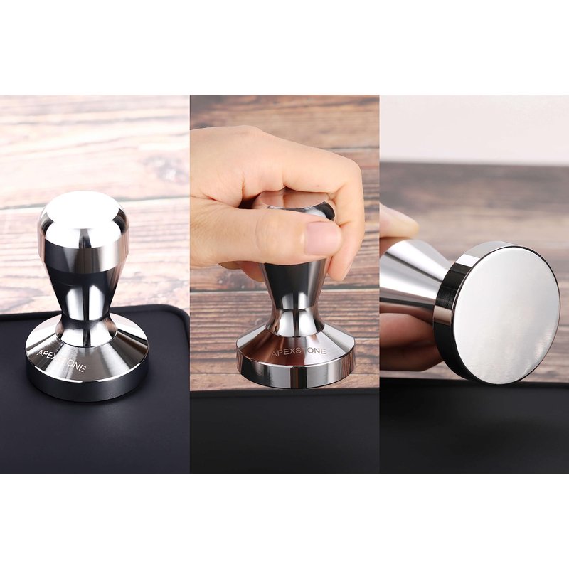 - Made of solid iron with chrome plated, non-rust nor corrosive. Apexstone premium tamper for espresso gives you the better experience of making a cup of coffee