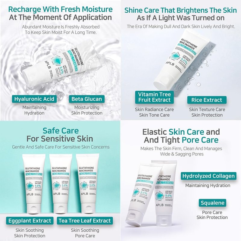 APLB Glutathione Niacinamide Facial Cleanser | LIPO GLUTA NIAC CEN™ 8.6% 2.71 FL.OZ/Korean Skincare, Cares for Tighten Pores & Sebum, Long lasting nourishment and deep moisture for soft skin
