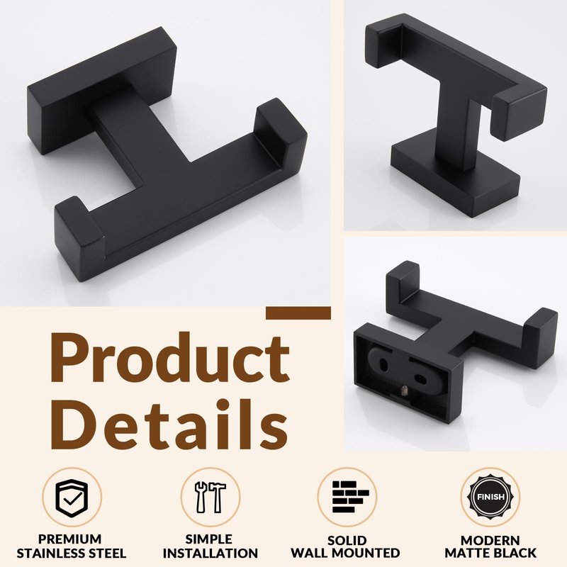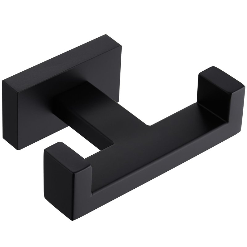 APLusee Double Robe Towel Hook, Stainless Steel Square Dual Coat Hook, Utility Bath Kitchen Storage Hanger Holder, Matte Black