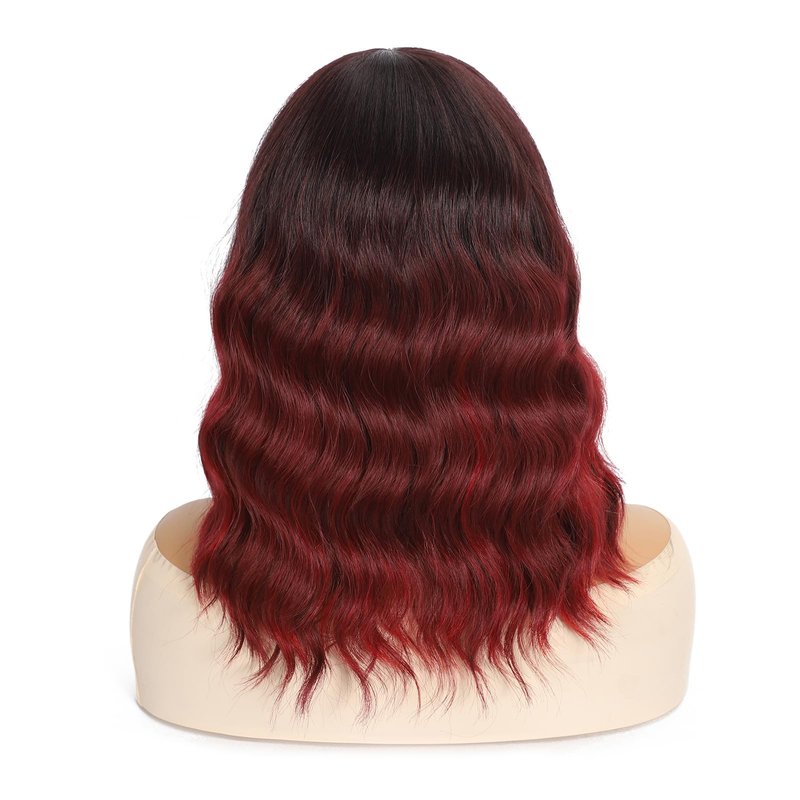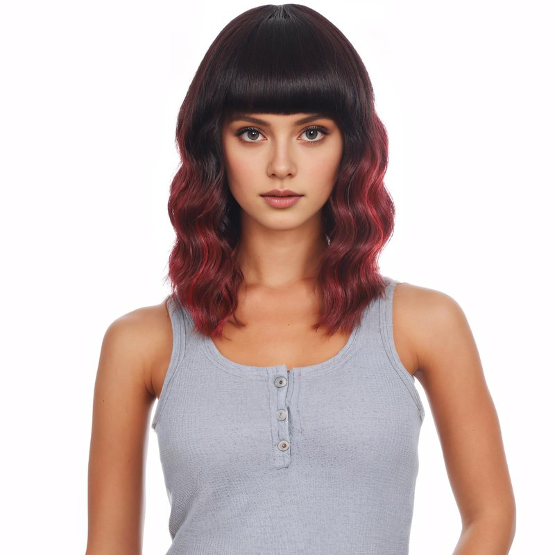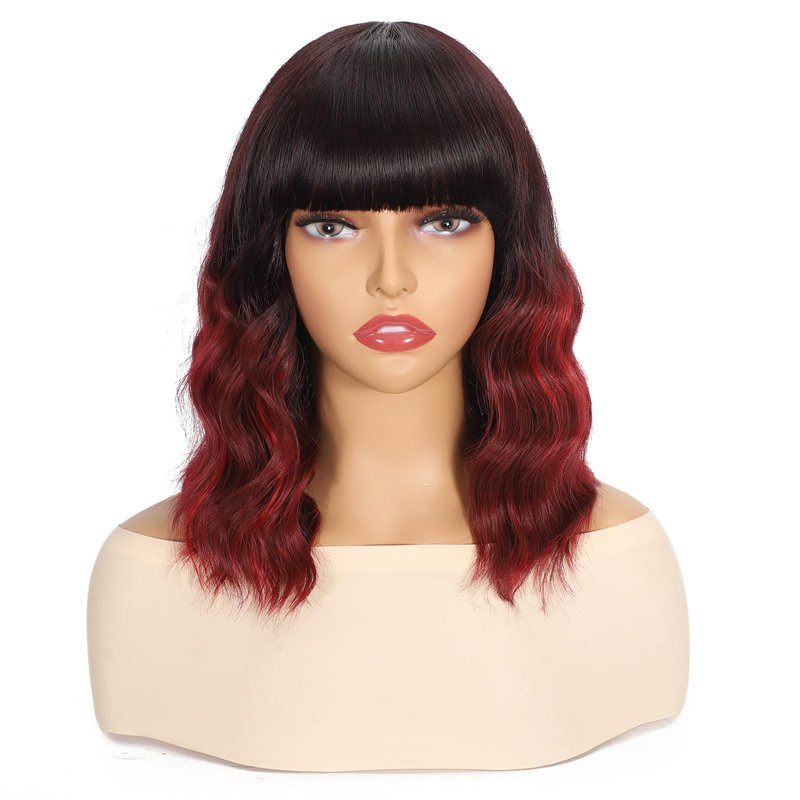 Apoze Short Wig With Bangs For Women,Synthetic Cosplay Bob Wigs,Curly Hair Wigs For Daily Party Use,Natural Looking Heat Resistant Shoulder Length Wig(Ombre Red Highlight)