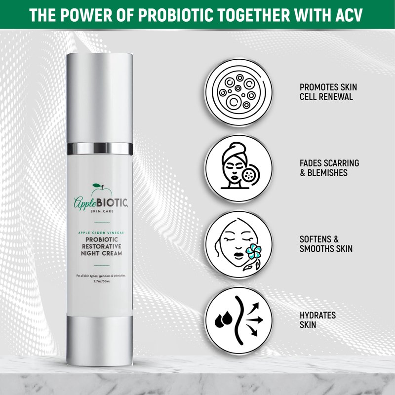 Apple cider vinegar skin care is what we do best. Paired with the power of probiotic extract, the extra strength ACV blended into our nighttime face cream moisturizer reveals the underlying beauty of your skin. The nutritive formula helps to refine & renew cells to turn back the hands of time. Defy aging with a naturally-derived skincare regimen provided by the wonders of science. Wake up feeling & looking refreshed. APPLE CIDER VINEGAR: Gently Exfoliating, pH Balancing, Spot Fading ORGANIC ALOE VERA: Rich in Essential Nutrients & Vitamins, Firms Skin, Minimizes Pores PROBIOTIC EXTRACT: Replenishes Enzymes for Deep Rejuvenation, Faster Skin Turnover & Repair AVOCADO OIL: Fatty Acids Rebuild & Regenerate Skin Structures, Locks in Healthy Hydration AFRICAN GREEN COFFEE EXTRACT: Energizes with a High Concentration of Antioxidants VITAMIN B3: Boosts Circulation to Promote Detoxification for a Naturally Beautiful Complexion GREEN TEA EXTRACT: Provides Soothing Relief for Sensitive Skin, Improves Skin's Elasticity CHAMOMILE EXTRACT: Caresses Skin with Soothing Moisture, Reduces Redness, Brightens + Made In USA – Safe, Trusted, American Made Naturally-derived Skincare Products for Men & Women Proven Results – Tested for Extreme Potency, Undiluted Apple Cider Vinegar Packs a Punch All Skin Types – Gentle Enough for ALL Skin Types: Sensitive, Dry, Combo, Oily, Acne-Prone Let your natural beauty shine through. Get ready to uncover your best skin with a state-of-the-art redness reducing face cream lotion. Detoxifying, brightening, tightening, firming & softening, our youthful ACV collection delivers the results you desire. It tackles frown lines, laugh lines & crow's feet, gives skin a supple texture & diminishes the appearance of fine lines. What are you waiting for? Do yourself a favor. Order your moisturizing facial night cream now!