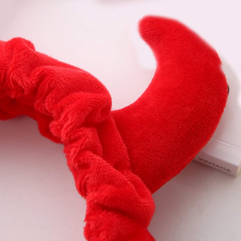 appuivbt Plush Red Devil Horns Headband,Face Wash Plush Hair Band Hair Hoop Makeup Turban Bandana Headband for Female Girls