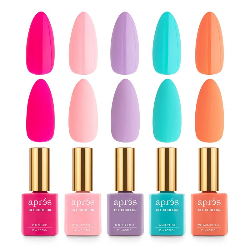 Apres Gel Couleur Combo Set, 5 Color Gel Nail Polish, Bright Nude Pastel Colors with Brush-X Nail Art Brush, 2024 Edition (Set 19)