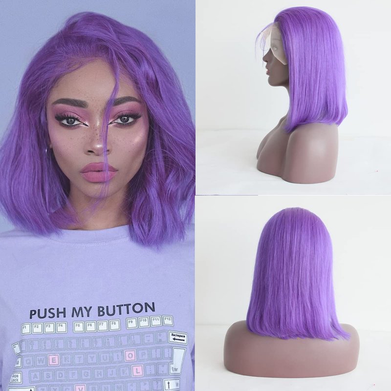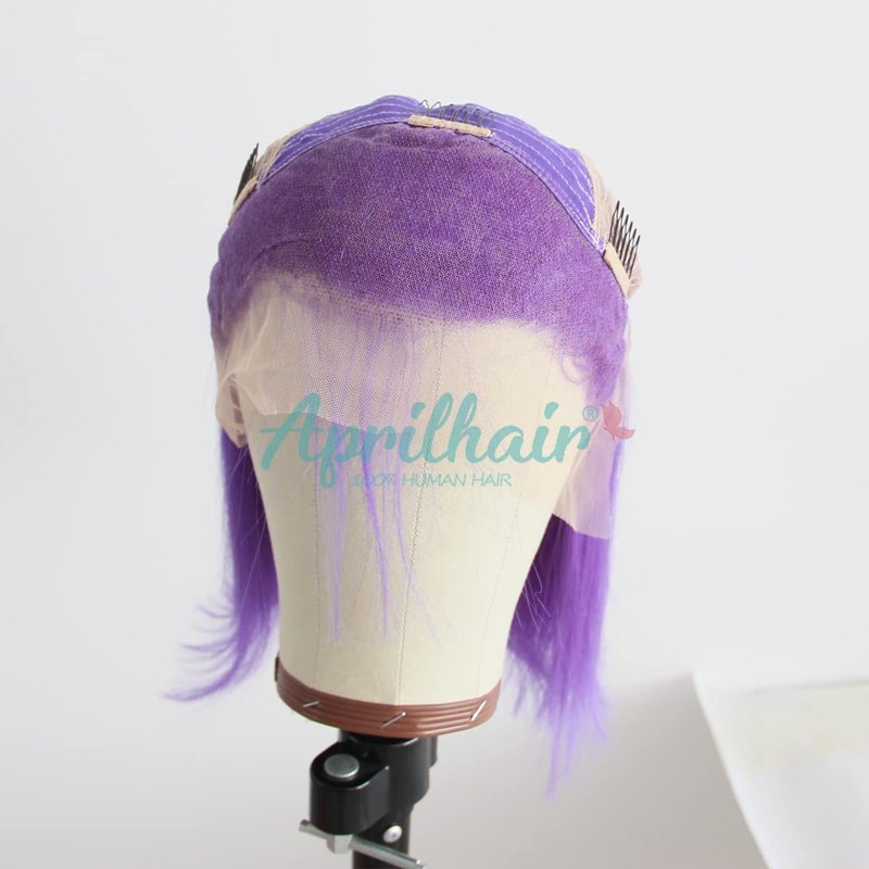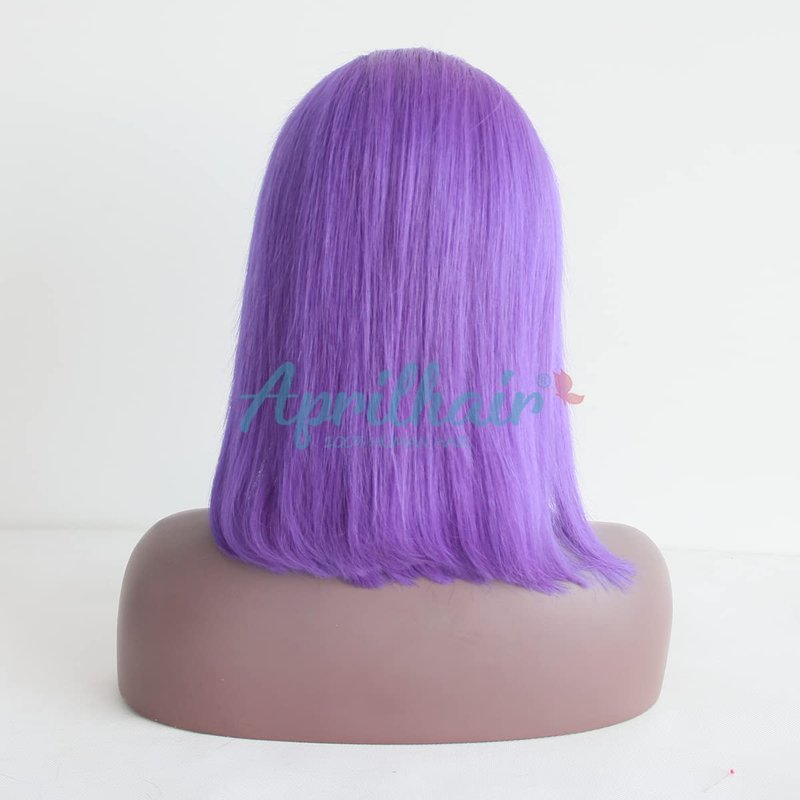 Aprilhair Pre-plucked Purple Bob Lace Front Wigs Glueless 130% Density Short Cut Straight Brazilian Virgin Human Hair With Baby Hair Full And Thick (12 inch)