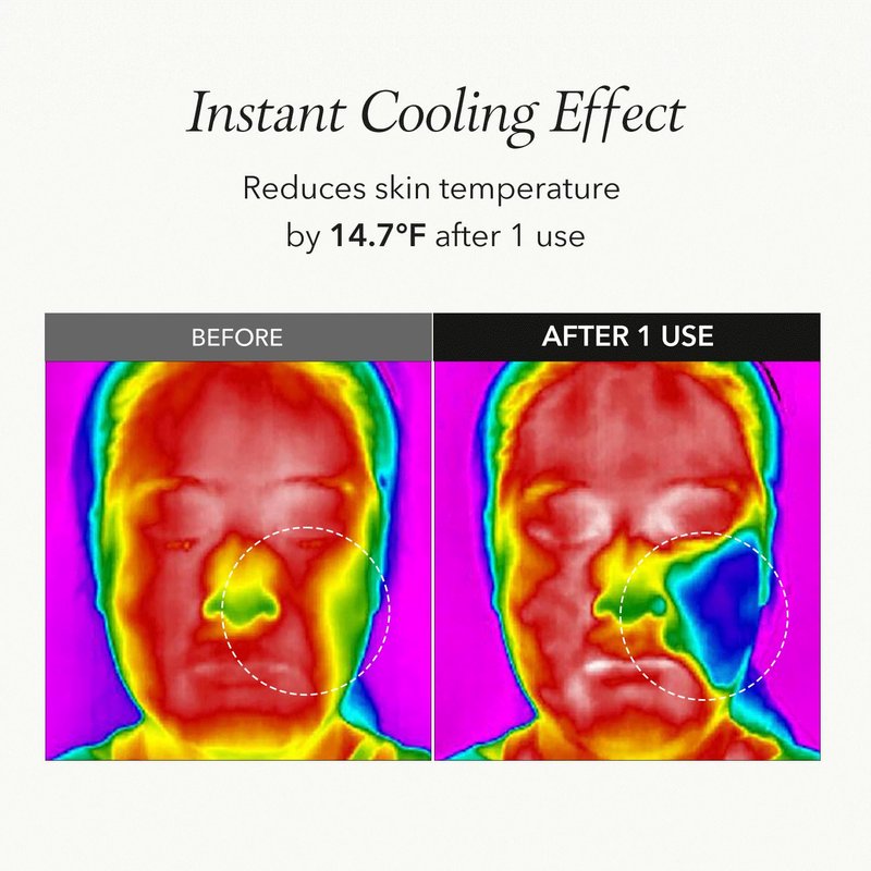 - Insant Cooling Effect: No need to keep it in the fridge! In just 5 minutes, this product reduces your skin’s temperature by 14.7℉. This soothes acne/breakouts, and prevents pores from enlarging due to heat-induced sebum secretion. Moist and cool skin helps makeup stay on fresh.