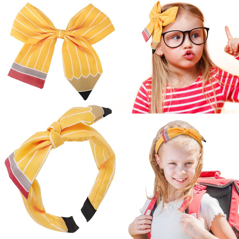 Yellow pencil hair bands are vibrant and youthful; bow hair clips are delicate and elegant, adding a sweet touch. Both are stylish and practical, ideal for back-to-school or everyday wear for kids and teachers.