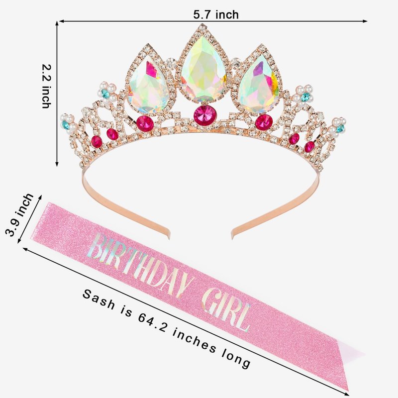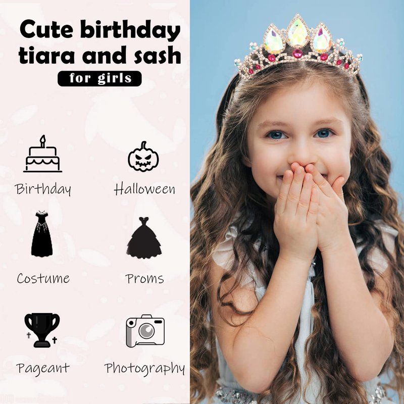 - 【Birthday Set】: Complete set including a beautiful birthday sash, tiara, and pin, perfect for women who want to celebrate their birthday in style. Perfect size fit for the age of 4+. Safety Warning: Please don't run fast while wearing the crown, so as to avoid children falling. Be careful not to point the tips of pins at your body to prevent accidental stabbing. Please wear the product correctly with the help of adults.