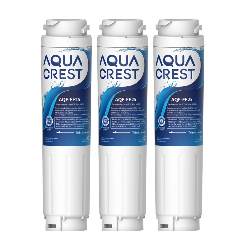 AQUA CREST 644845 Refrigerator Water Filter Replacement for Bosch® Ultra Clarity® 644845,9000077104, 9000194412, B26FT70SNS, B22CS80SNS, B22CS50SNS, Haier 0060820860, Miele KWF1000, 3 Filters