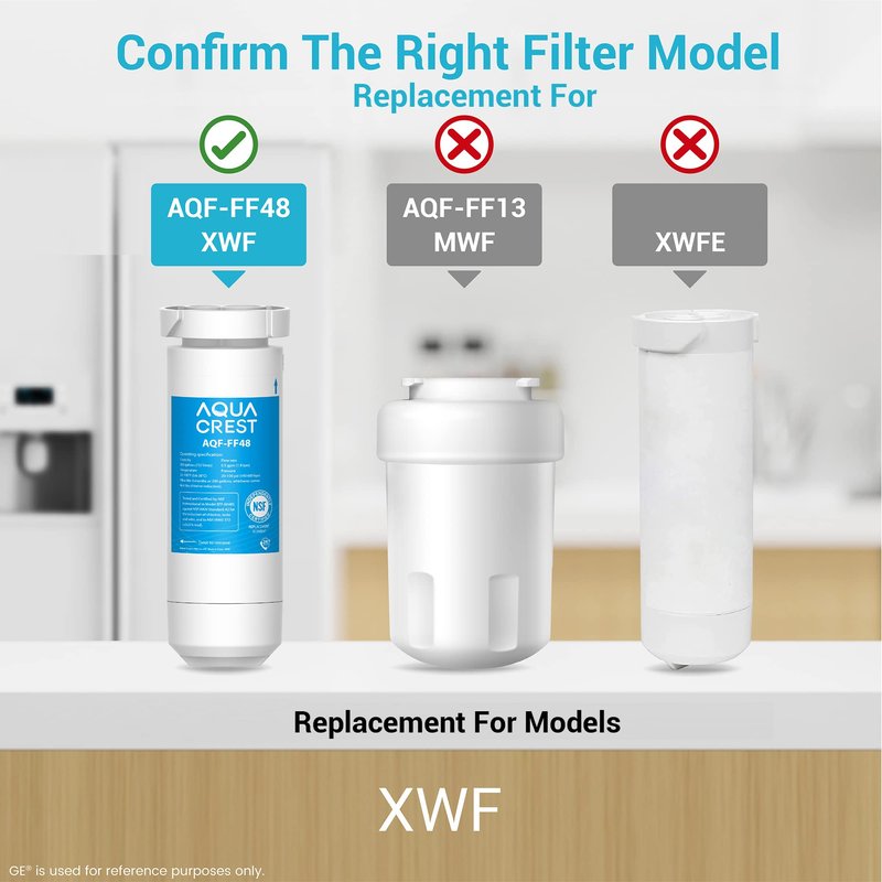 - Replacement for models: GE XWF, GE WR17X30702, Waterdrop WD-F48, Maxblue MB-F48, FilterLogic FL-RF48, Waterspecialist WS648A, Crystala CF9, Glacier Fresh GF-XWF, Pureza PF9. 𝐍𝐨𝐭𝐞: 𝐗𝐖𝐅! 𝐓𝐡𝐢𝐬 𝐟𝐢𝐥𝐭𝐞𝐫 𝐢𝐬 𝐫𝐞𝐩𝐥𝐚𝐜𝐞𝐦𝐞𝐧𝐭 𝐟𝐨𝐫 𝐗𝐖𝐅 (𝐰𝐢𝐭𝐡𝐨𝐮𝐭 𝐜𝐡𝐢𝐩), 𝐧𝐨𝐭 𝐗𝐖𝐅𝐄(𝐰𝐢𝐭𝐡 𝐜𝐡𝐢𝐩)!