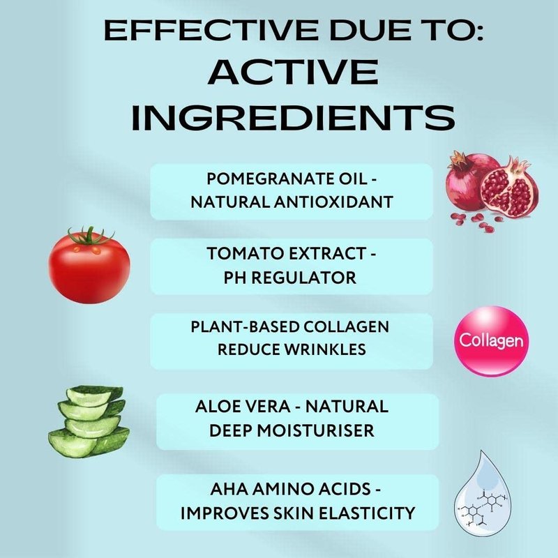 - 💧 ANTI-AGING FORMULA - Our anti-aging collagen face cream contains powerful ingredients such as tomato extract, pomegranate oil, and collagen. They work together to balance the pH level, provide antioxidant protection, and promote a firmer, more youthful complexion.