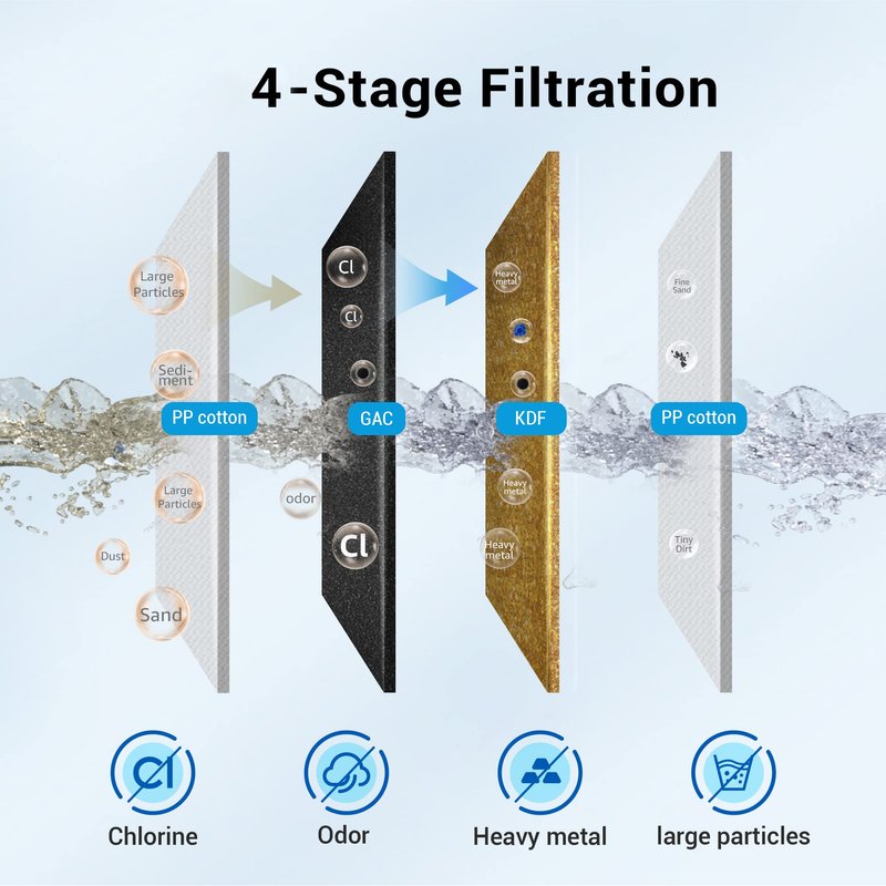 - 4-stage filtration: AQUACREST shower filter uses multiple filtration media, including a pre-filter layer, advanced kinetic degradation fluxion, granular activated carbon and pp cotton to effectively reduce contaminants like chlorine, heavy metals, sulfur odor, sediment and large particles. It can reduce PFAS substances, providing you with cleaner and safer water. The granular activated carbon is made from natural coconut shells. Please confirm whether you are allergic to it .