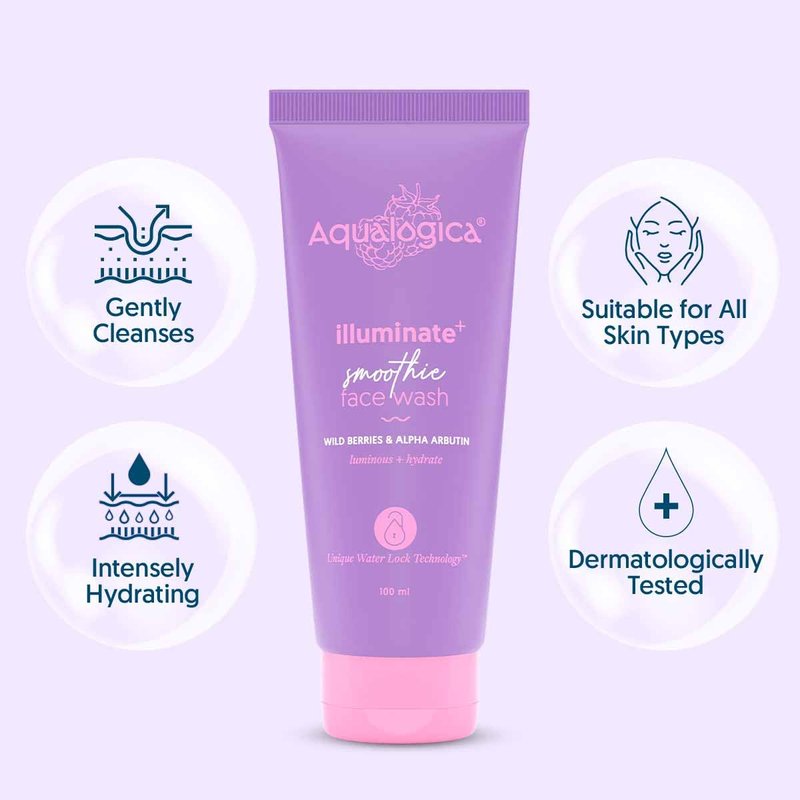 - Aqualogica Illuminate+ Smoothie Face Wash With Wild Berries & Alpha Arbutin For Gently Exfoliates & Hydrates Skin | For Combination & Dry Skin -100Ml