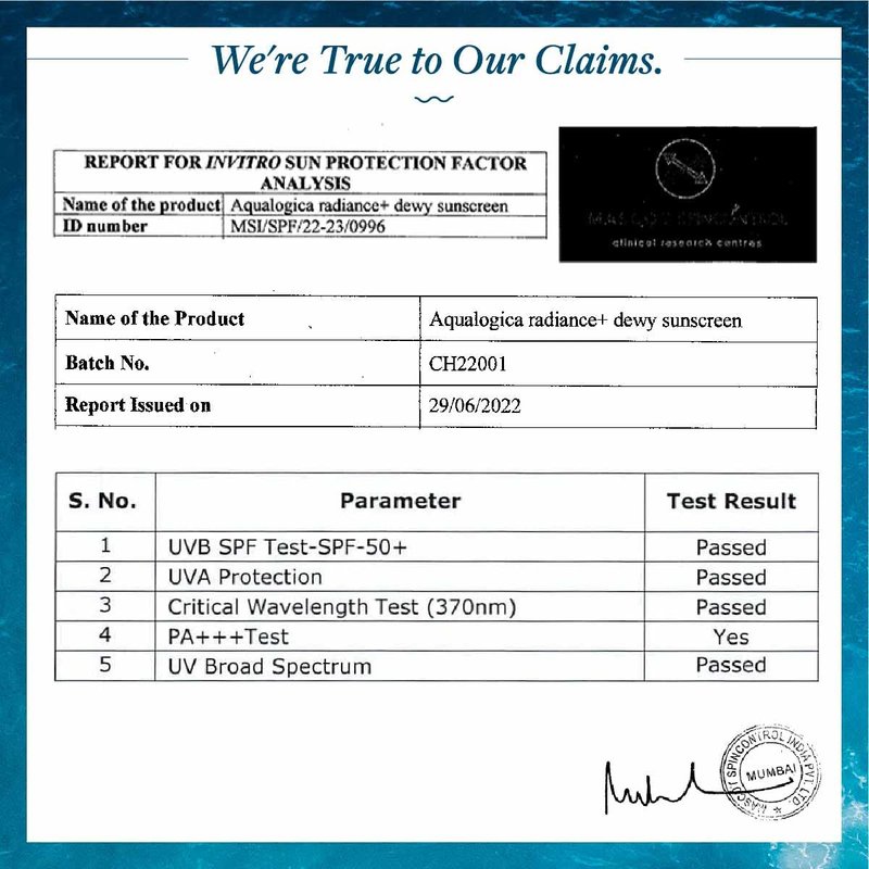 - Lightweight, Non Sticky Formula: Radiance Dewy Sunscreen is a fragrance free and color free sunscreen that has a lightweight and fast absorbing formula; It is non greasy and does not clog the pores or leave behind a white cast