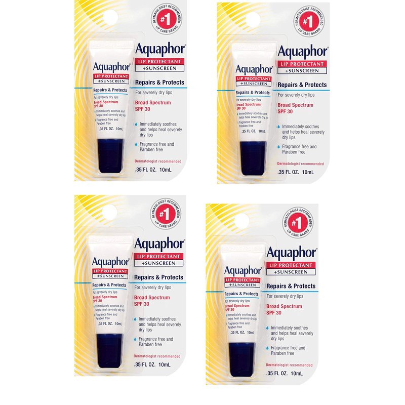 Aquaphor Lip Protectant and Sunscreen Ointment - Broad Spectrum SPF 30 - Relieves Chapped Lips.35 fl. Oz. Tube, 4 Pack
