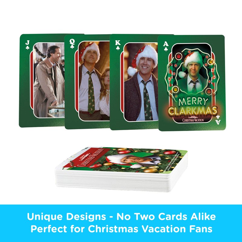 - CHRISTMAS VACATION DECK OF PLAYING CARDS: Play your favorite card games with friends and family as you add some cheer to your holidays with this Christmas Vacation-themed deck of playing cards