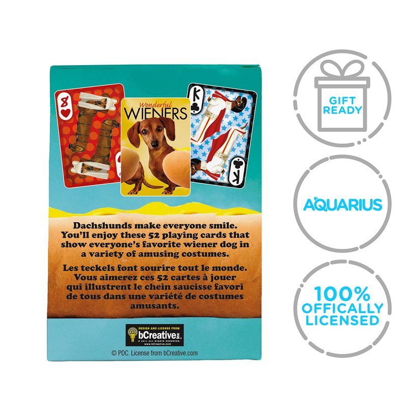 - WONDERFUL WIENERS PLAYING CARDS: Play your favorite card games with friends and family as you enjoy this deck of Dachshunds playing cards including 52 playing cards that show everyone's favorite wiener dog in a variety of costumes making you smile