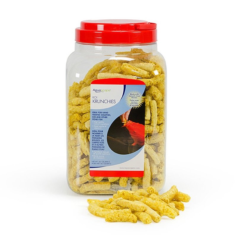- The size, shape, and taste of Koi Krunchies make them a perfect tool for training your fish hand feed, often a difficult task for pond owners