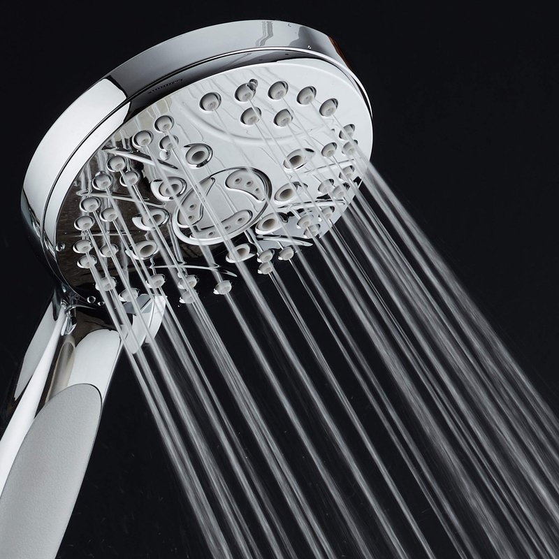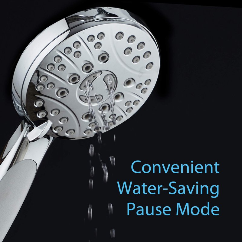 - HIGH-PRESSURE 6-SETTING HAND SHOWER can be used as overhead or handheld shower | Extra-large 4.2" Face for wider flow coverage | Advanced 3-zone Click Dial for more power and flow precision | Anti-clog Rub-clean Nozzles for easy cleaning | Anti-Slip Handle for reliable grip | 6 luxurious settings include Power Rain, Pulsating Massage, Gentle Mist, Rain-Massage, Rain-Mist and Convenient Water-saving Pause Mode | Sophisticated Modern Design | Premium Spot & Scratch Resistant All-Chrome Finish