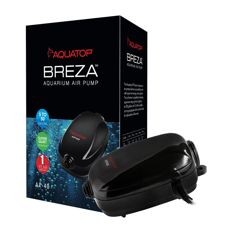Aquatop Breza Aquarium Air Pump Single Outlet, Hi/Low output, Super Quiet, up to 50 Gal Fish Tank, AP-40