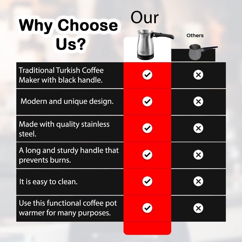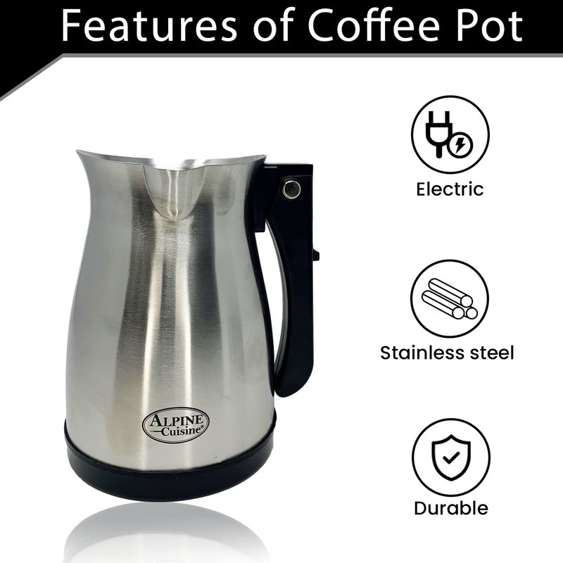 - Turkish Coffee Maker: Alpine Cuisine electric coffee pot features an innovative design that blends the traditional aesthetics of a Turkish ibrik with modern technologies. No need to go out, easily make your favorite Turkish, Arabic, & Greek coffee with just a touch of a button!