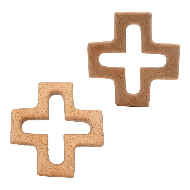 Arakierst 2pcs Organic Wood Cross Pure Natural Animal Shape Toys Beech Wooden Handmade Grasping Pattern DIY Pacifier Chain Pendant