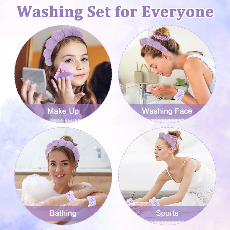 - ☁【Skin-friendly Material 】Face wash headband and wristband sets are mainly made of sponge and microfibre material, which is soft and comfortable to wear, easy to clean and reusable for a long time. The wristbands, powder puffs and hair bands can be paired to meet your multiple daily needs.