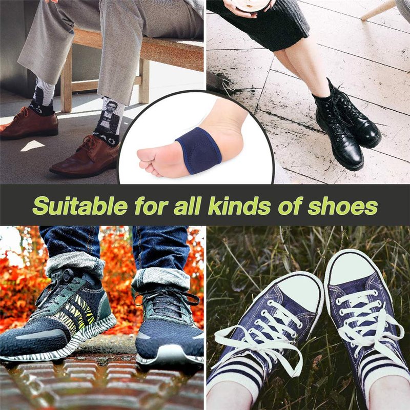 - FOOT CARE : The arch supports designed for reducing the symptoms of heel spur pain, plantar fasciitis, strains and sprains when relaxing or being active. Ideal for low arches, flat feet, painful foot conditions, toe or bunion pain. The arch support sleeve has a strong elasticity and can be worn directly.