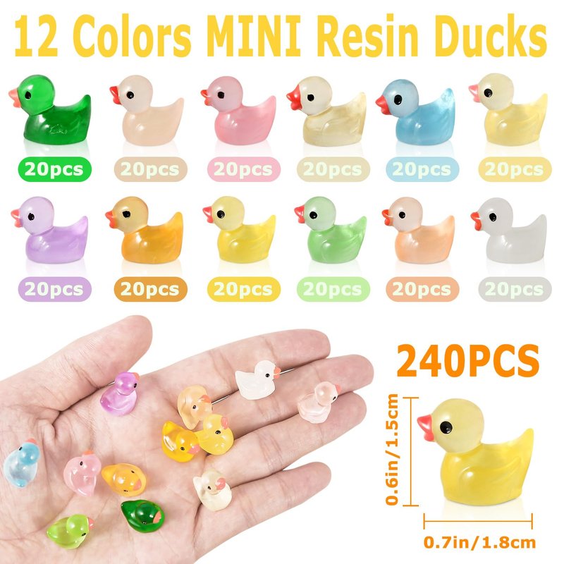 - 【Bulk Luminous Ducks】You will get 240 pieces of miniature colorful luminous resin ducks in 12 colors, and 20 of each color, sufficient quantity can meet your various needs. The luminous ducks will turn nighttime into a fantastic garden.
