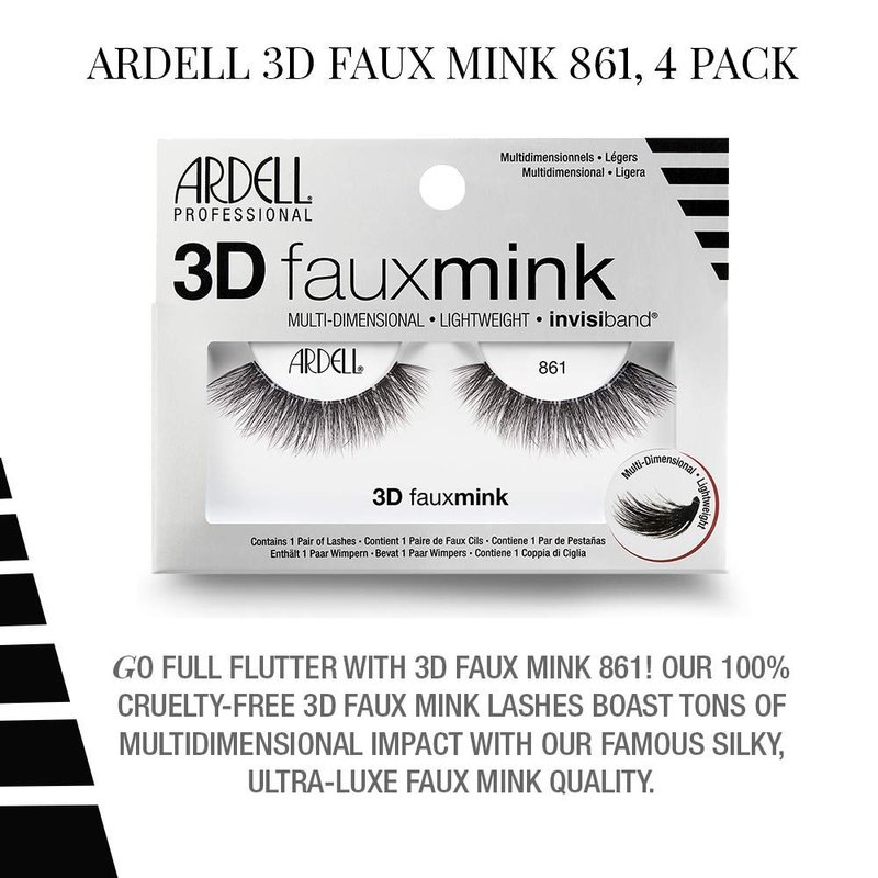 - MULTI-LAYERED AND EXTREMELY CURLED FALSIES: Ardell 3D Faux Mink Lashes Black in style 861 are multi-layered and they feature extreme curl. If you want a pair of statement lashes for a big night out then look no further - you can't go wrong with these super falsies. Gorgeous on all eye shapes, it boosts your lash look with every wear that will give you an outstanding demure look that still makes a major beauty impact.