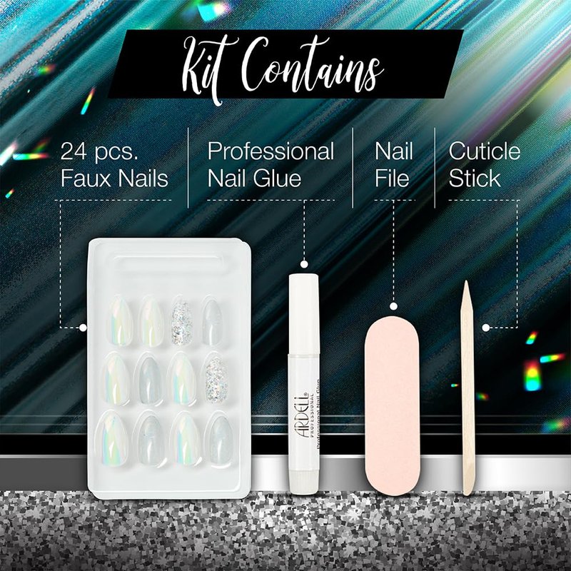Ardell Nail Addict Premium Artificial Nail Set, Holographic Glitter, 24-Pc, Medium, Almond-Shape, DIY Press-On Nails, Quick and Easy to Apply, with Glue, Cuticle Stick and Nail Filev