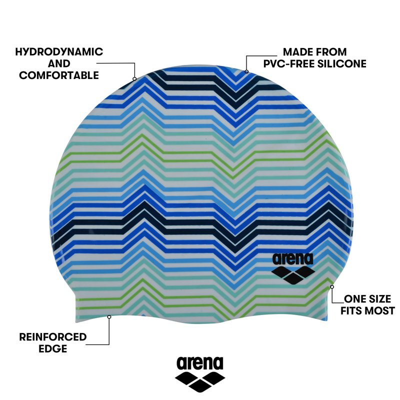 Arena Print 2 Unisex Silicone Swim Cap for Adults, Women and Men Intensive Training Comfortable Non-Slip Long Hair Swimming Hat, Stripes