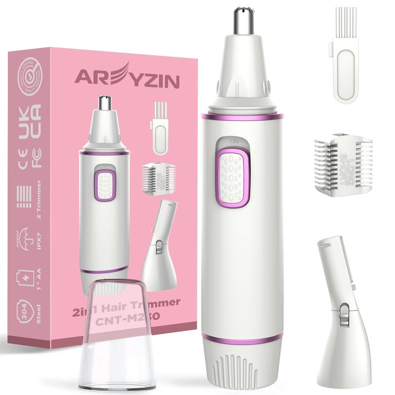 AREYZIN Nose Hair Trimmer for Women 2 in 1 Painless Eyebrow Trimmer and Nose Trimmer Facial Hair Removal Nasal Hair Clippers Professional, Waterproof, Dual-Edge Blade