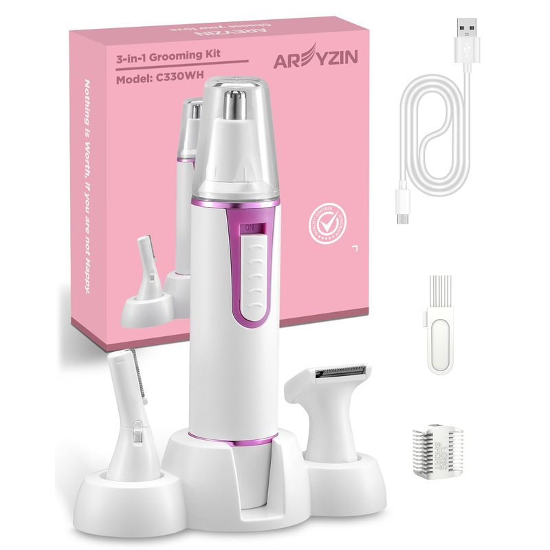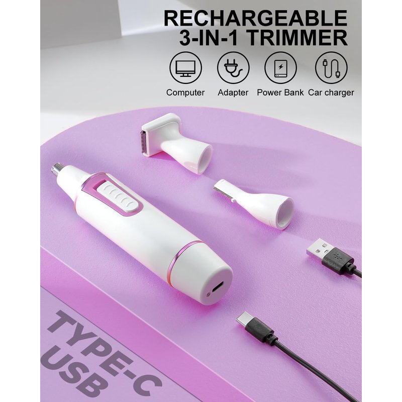 - 【MULTIFUNCTIONAL & VERSATILE】: With its 3-in-1 design, this trimmer for women is not just limited to nose hair removal. It also includes removable trimmer attachments for eyebrow trimming and facial hair removal,body hair grooming, making it a versatile tool for all your grooming needs.