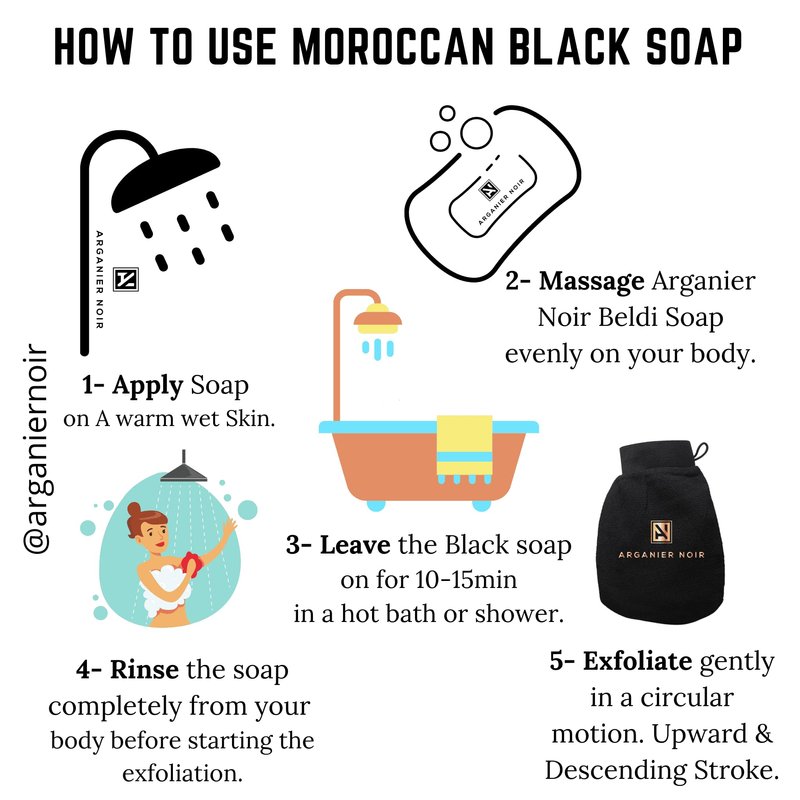 Moroccan Black Soap with olive oil or Beldi Soap from Morocco is the best skin care routine for all skin types. Important Routine that will help you removes dead skin cells, improves skin texture, unclogs pores, reduce in-grown hair, helps other skin care products penetrate deeper and smoothly and leaves skin softer, smoother and more radiant skin looking.
