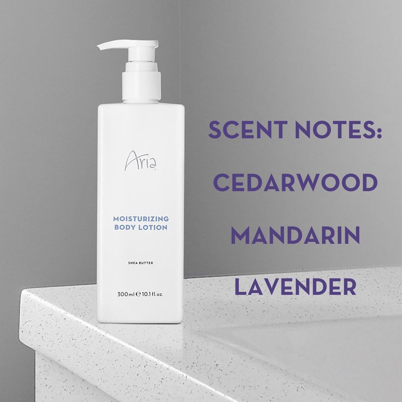 Aria Moisturizing Body Lotion - Hydrating Shea Butter - Scented with Cedarwood, Green Mandarin, Lavender - Vegas Hotel Body Lotion - 10 oz