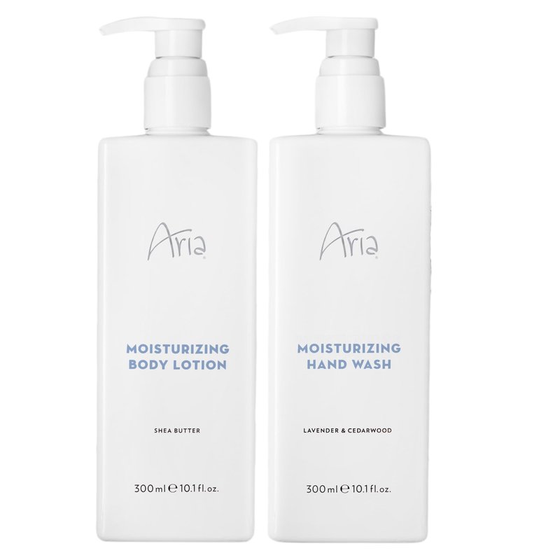 Aria Skin Care Set - Hand Wash & Body Lotion - Scented with Cedarwood, Green Mandarin, Lavender - Hotel Body Care Amenities - 10 oz, White
