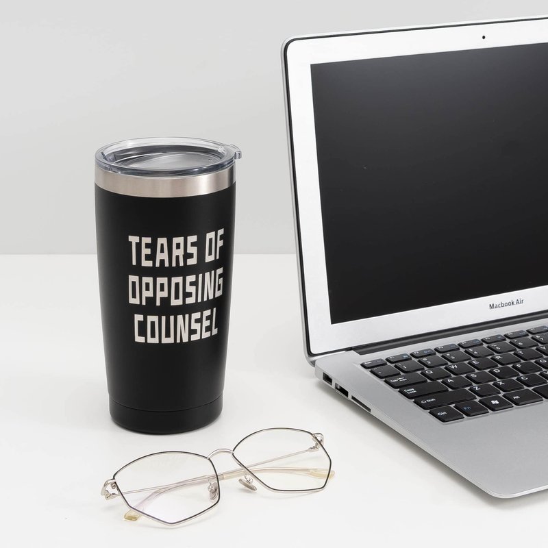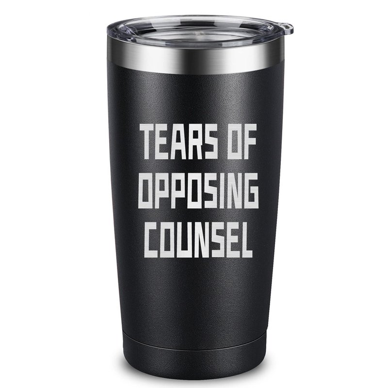 - Best Lawyer Gifts for Appreciation, Birthday, Retirement or just because: 20 oz teacher cup with forever engraved "Tears of Opposing Counsel" saying on front.