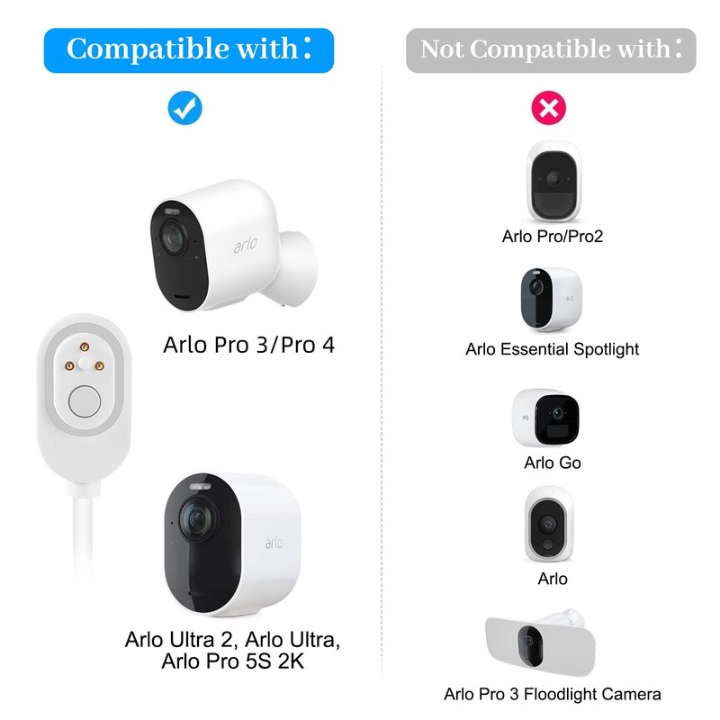 Compatible with Arlo Pro 3, Arlo Pro 4, Arlo Ultra, Arlo Ultra 2, Arlo Pro 5S 2K