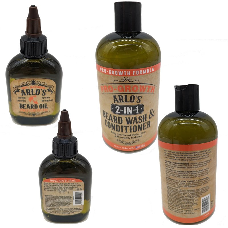 - BEARD WASH SHAMPOO AND BEARD OIL SET:This deluxe set features both our all new Arlo's 2-in-1 Beard Wash & Conditioner 12 oz. AND our Arlo's Pro-Growth Beard Oil 2.5 oz.
