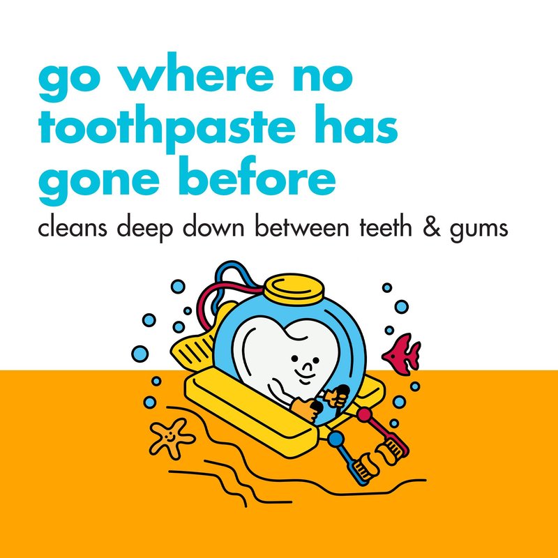 - Penetrates in between teeth and along the gum line to remove plaque and control tartar (move this to bullet 5)